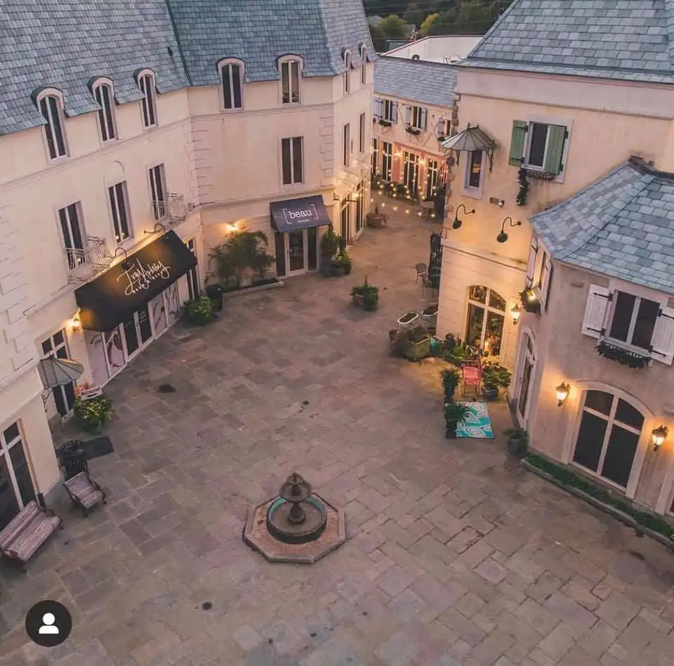 The attention to architectural detail at Lafayette Village goes far beyond surface-level theming. Building facades incorporate authentic elements like wrought iron balconies, arched doorways, and the kind of weathered stone detailing that takes European villages centuries to develop naturally. The color palette of soft pastels and earth tones creates visual cohesion while allowing individual buildings to maintain distinct character.