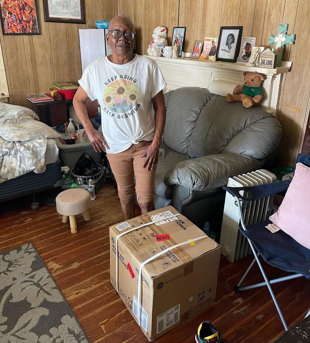 Undergoing chemo treatments, Anita was living without a/c in her home. Thanks to Realtor Drew Dames, Anita now enjoys recovering in her cool home after delivery of a free window a/c unit.