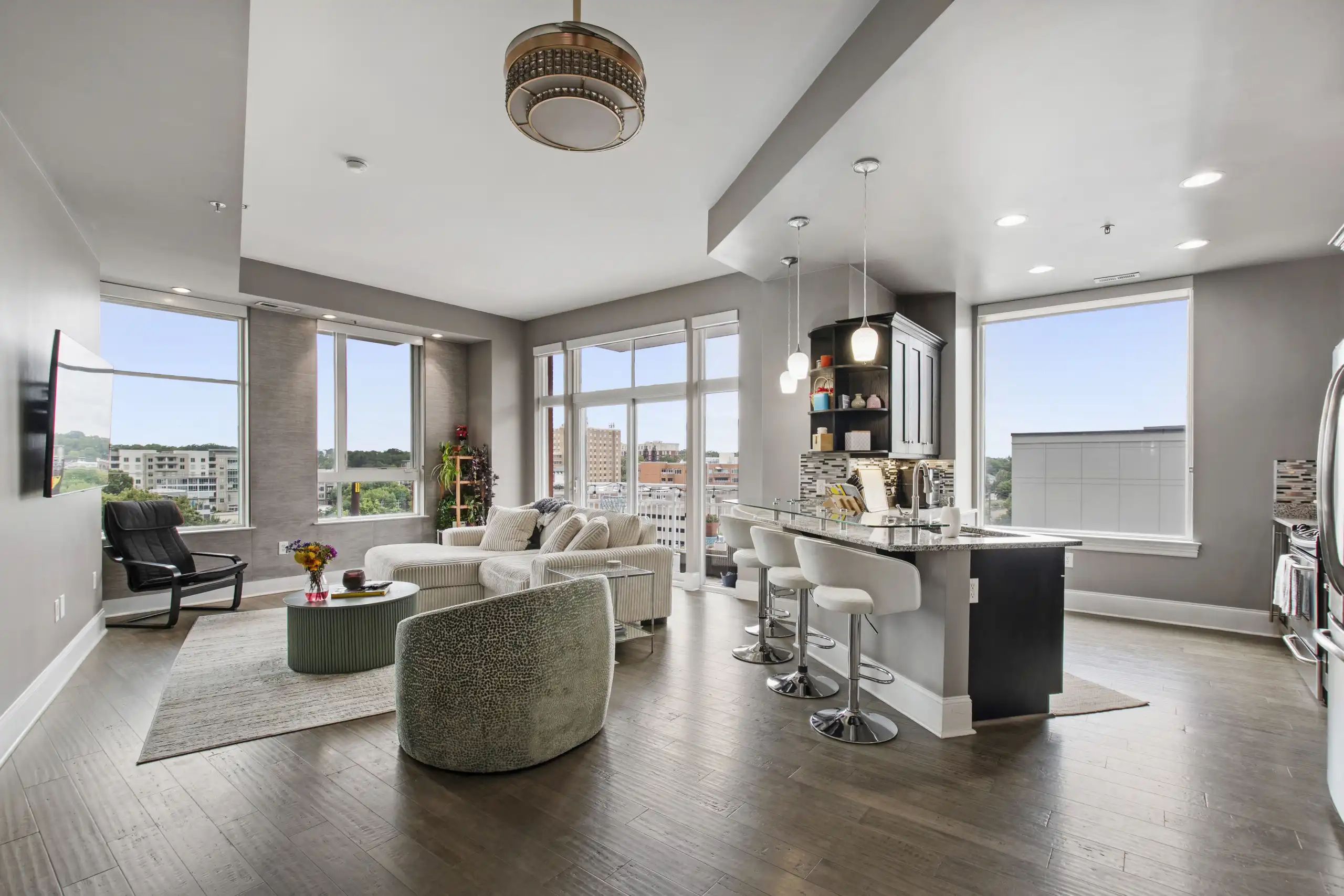 This light-filled home features sweeping skyline views that come alive when the clock strikes midnight, modern finishes, and a spacious open-concept layout designed for hosting intimate gatherings or watching the city celebrate below.