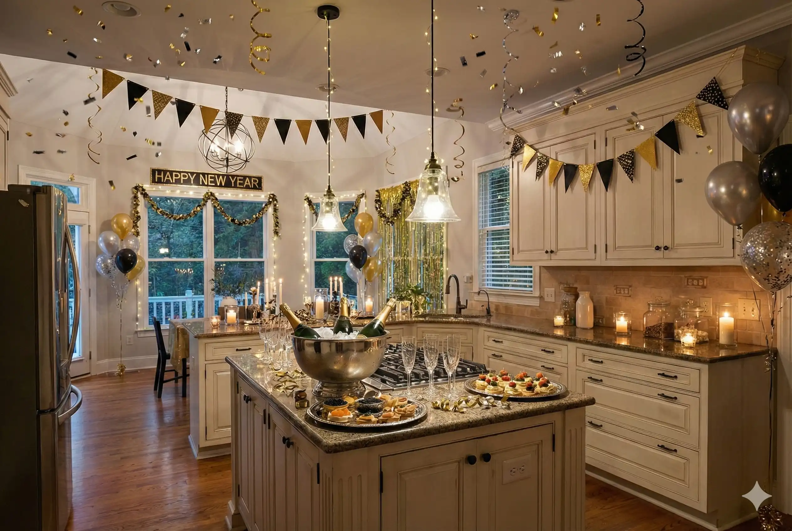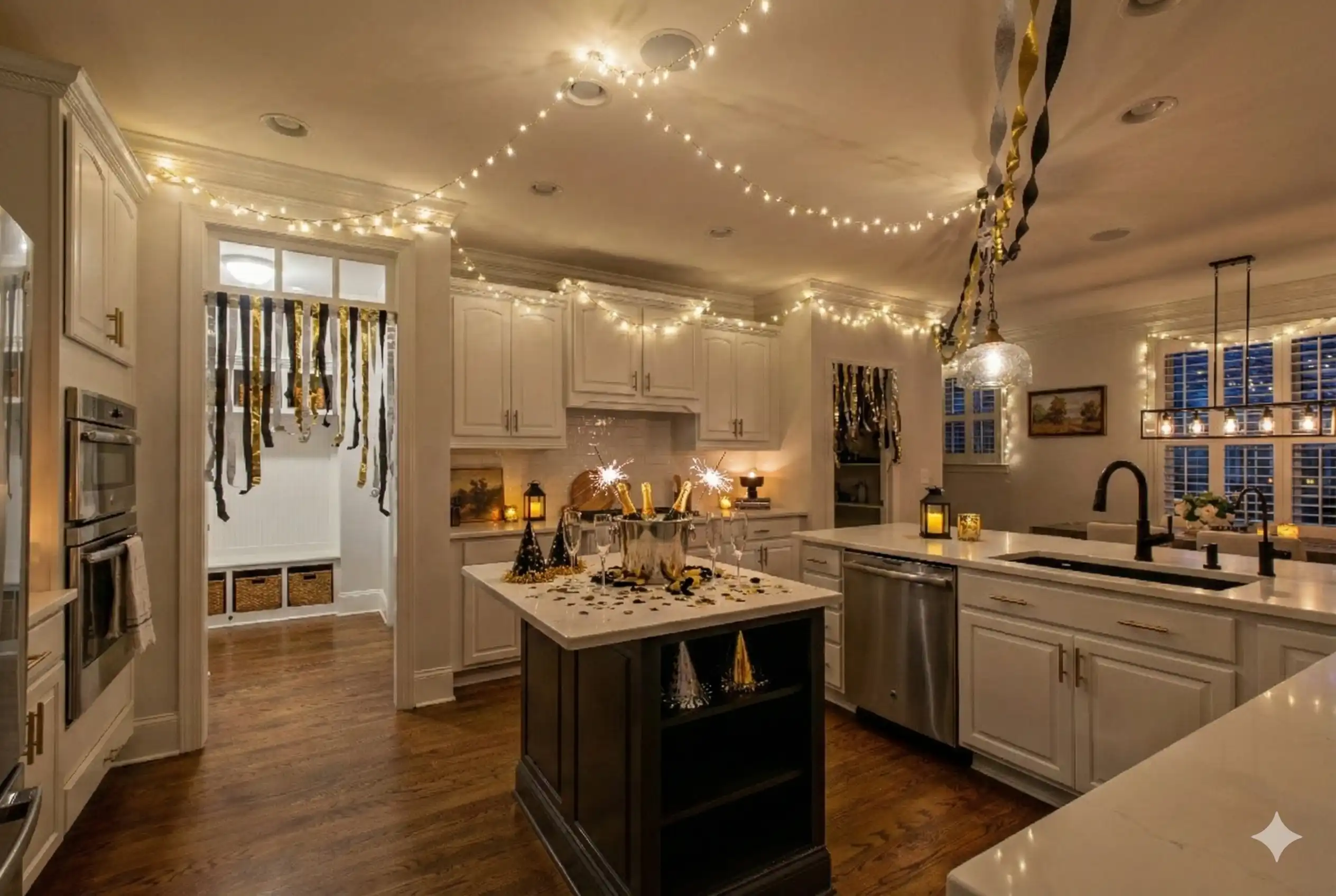 The same kitchen that feels bright and airy in listing photos becomes the backdrop for champagne toasts and midnight appetizers. The living room you toured in the fall is now glowing with candles, guests gathered around waiting for the countdown. That open floor plan? It’s suddenly full of laughter and clinking glasses as the clock strikes twelve.
