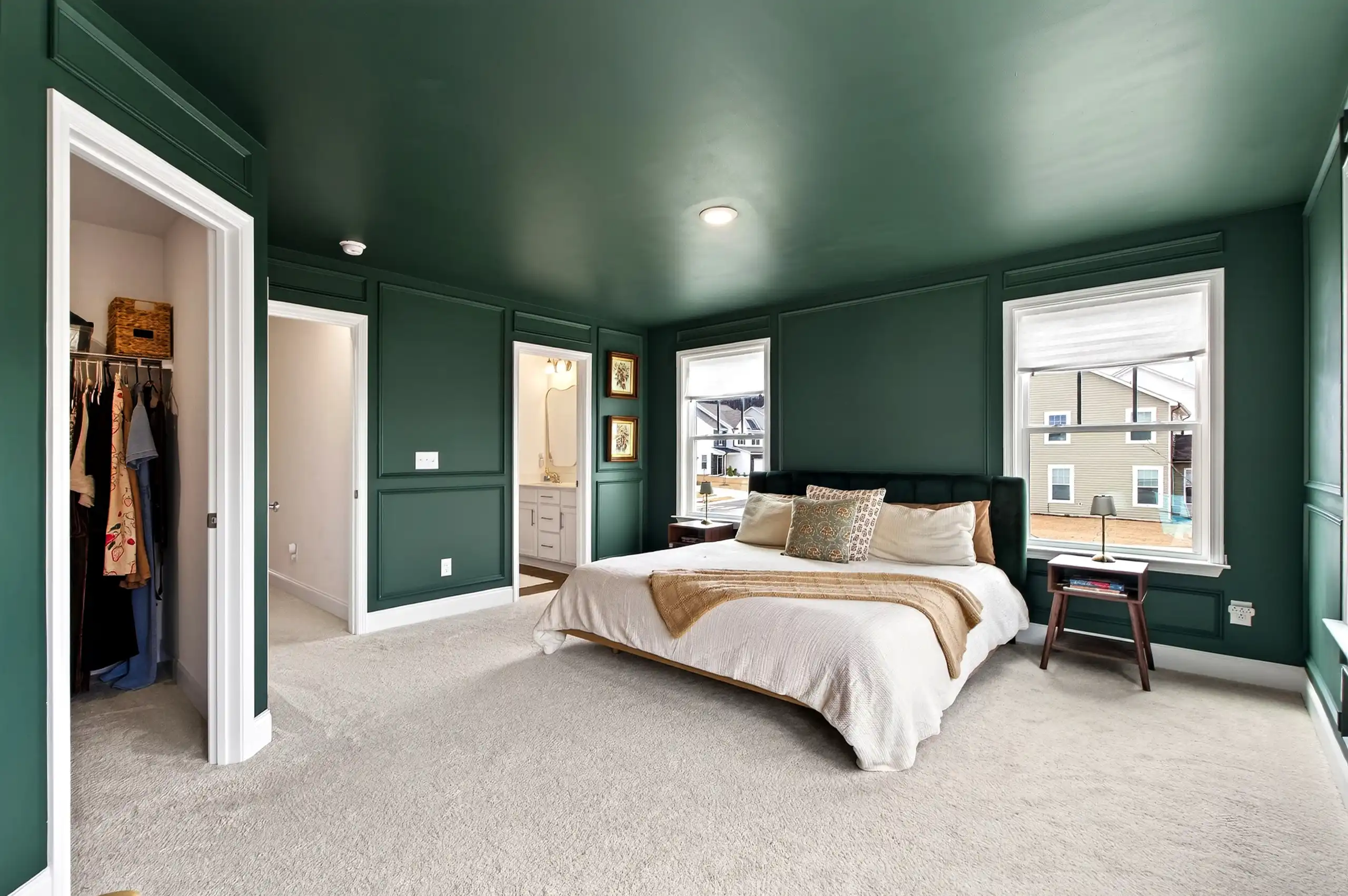Upstairs, custom touches add both function and style. Two secondary bedrooms have been enhanced, including a built-in desk and storage setup that’s ideal for working from home plus the desk section can be pulled out to accommodate a queen bed when needed. The second bedroom features wainscoting for a clean, polished look. The primary suite is an inviting retreat with wainscoting and a dedicated reading nook that’s made for quiet afternoons, and the bathroom is finished with premium mirrors for a more custom feel. Beyond the aesthetic upgrades, this home has also been improved with a new HVAC system and solar panels; smart, sustainable updates that add everyday value.