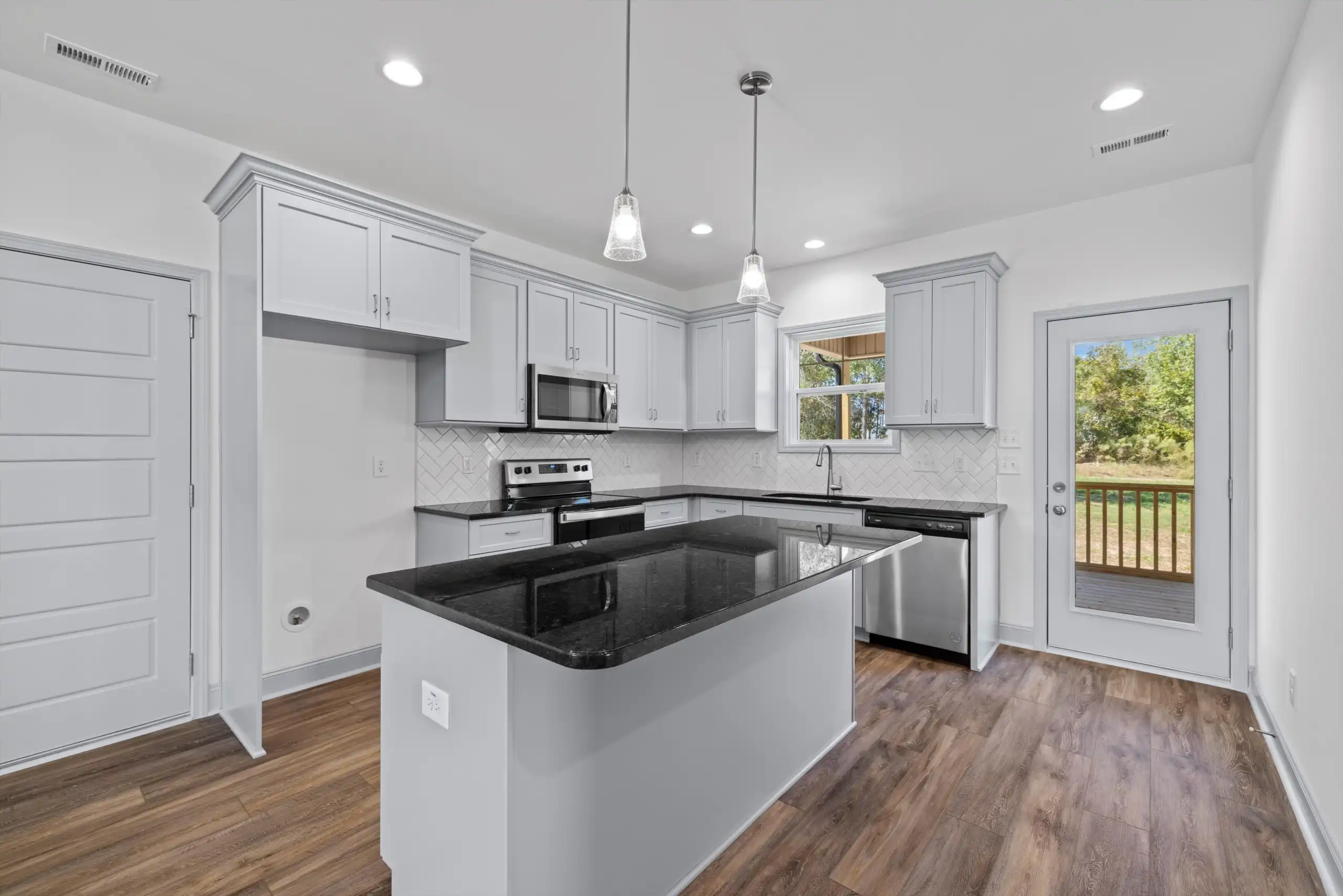 The kitchen is a standout feature with granite countertops, endless cabinetry, and a massive walk-in pantry that provides all the storage space you could ask for. Designer-selected finishes add a layer of sophistication, while the home’s prewired security system and doorbell camera bring peace of mind.